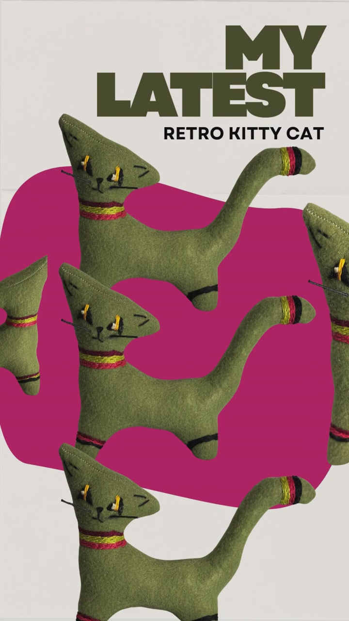 Green and Striped Retro Kitty Cat  - One of a Kind - Soft Art Plush